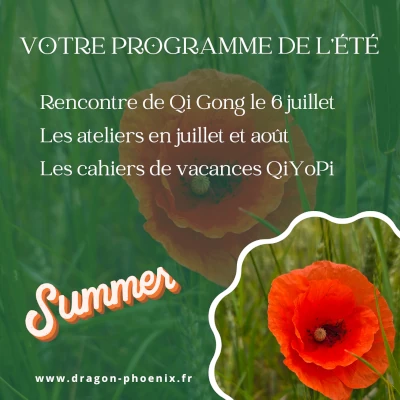 Votre été 2024, la rencontre de Qi Gong, les ateliers et bien entendu les cahiers de vacances